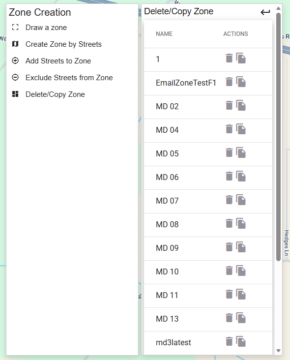 Excluding streets from zone.4. Deleting/Copying a Zone