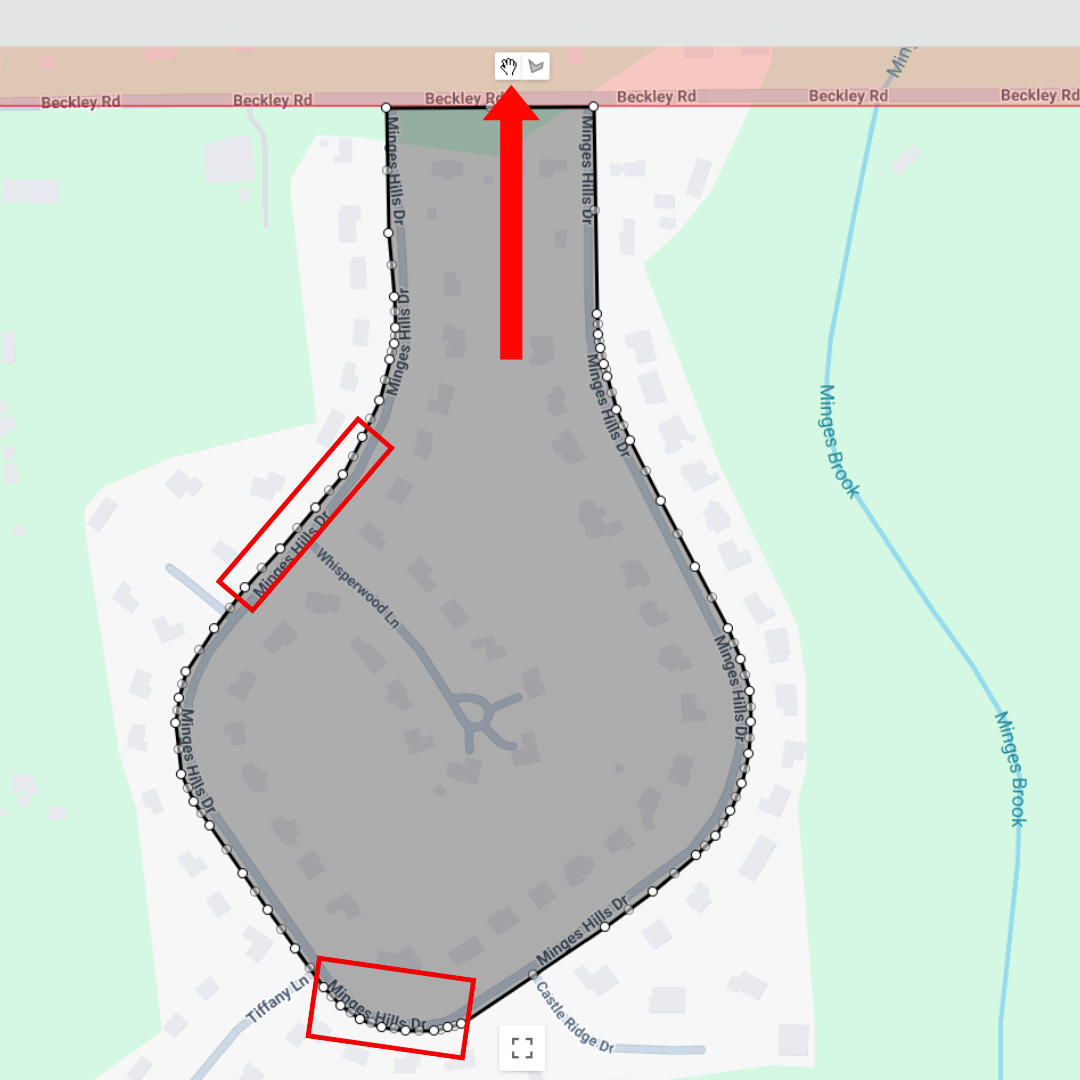 - Start drawing the zone by tracing the perimeter of the area where you would like the zone to be created, making sure to check the nearby street boundaries.