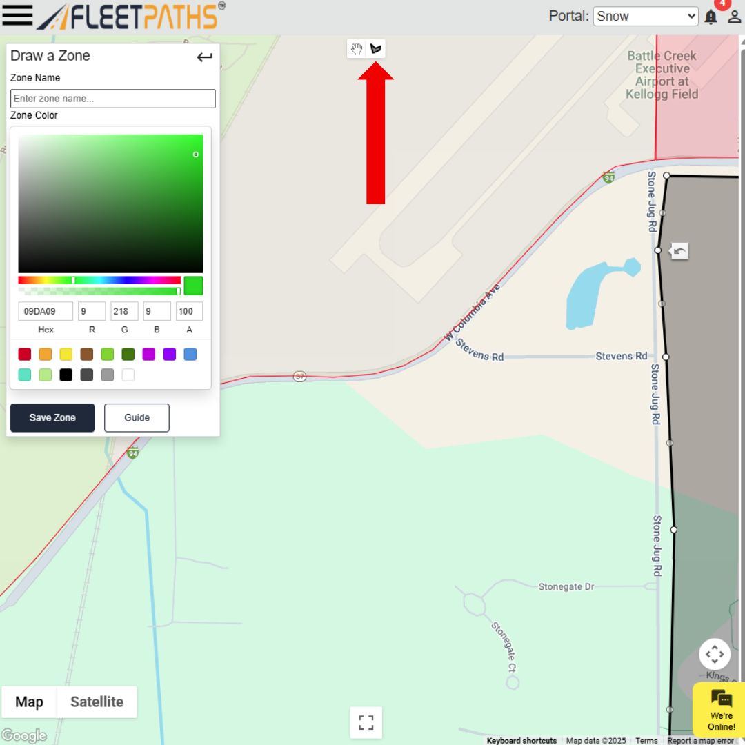 - When finished editing your zone boundary, click Save Zone in the left-side menu. Remember, once saved, the zone cannot be edited. It will need to be deleted and redrawn for changes.