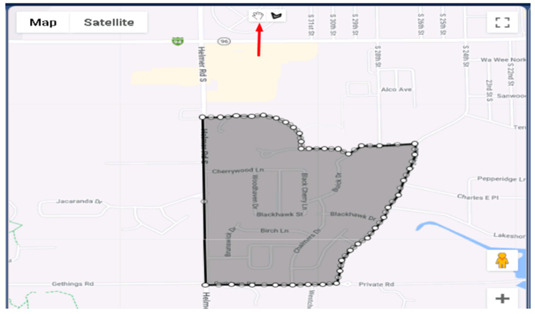 - Step 5: After drawing the polygon, click the “Stop Drawing” icon at the top of the map.