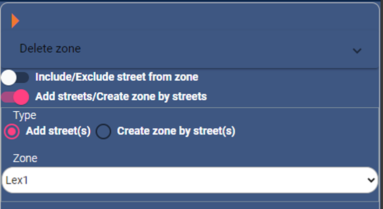 - Select “Add street(s)” and choose the zone to add streets to.
