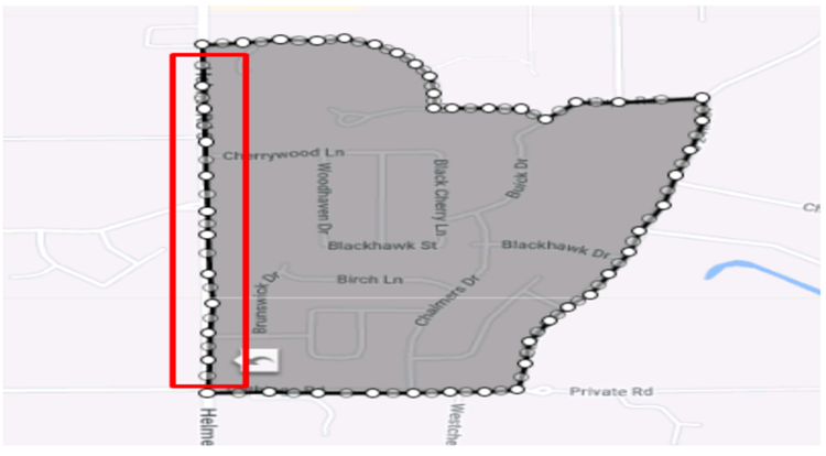 - Step 6: Zoom in to the maximum level at all corner points and adjust the boundary line (dots) to cover the full street, either inside or outside the line.