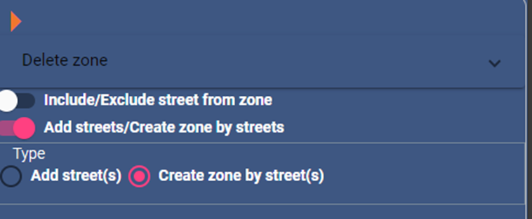 - Step 13: To create a zone by selecting streets, toggle on “Add streets/Create zone by streets”, then select “Create zone by street(s)”.