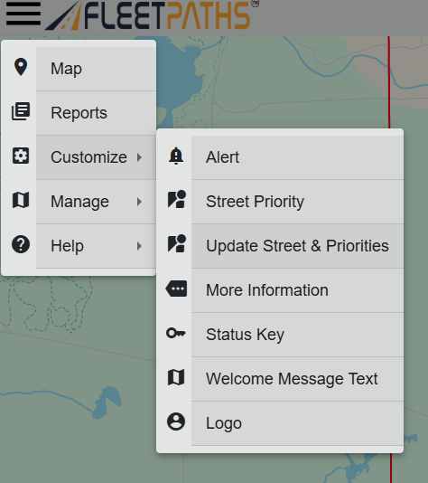 - Select the Update Streets & Priorities option.