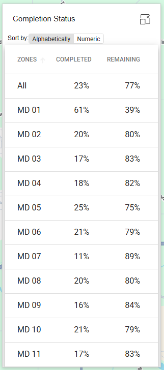 - Building off of the Completed column, this column shows how much of the zone has yet to be completed by percentage.